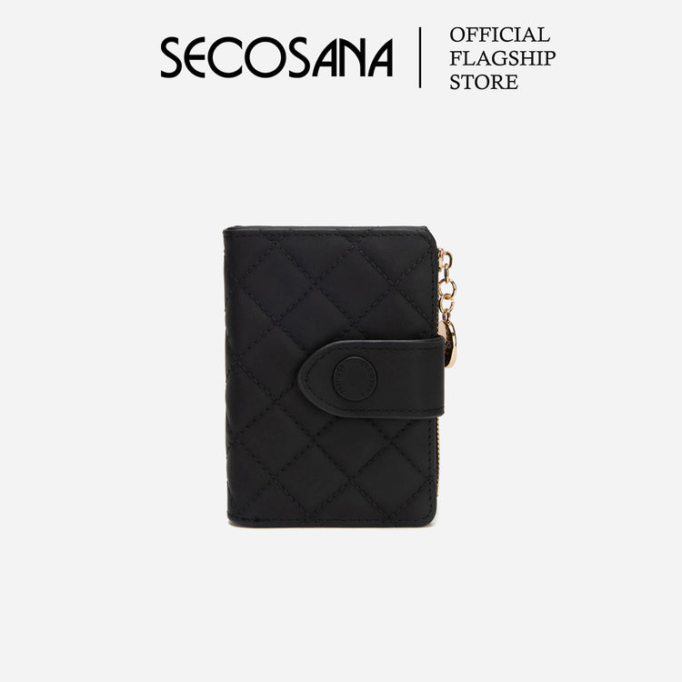 - Solid tone quilted design wallet.